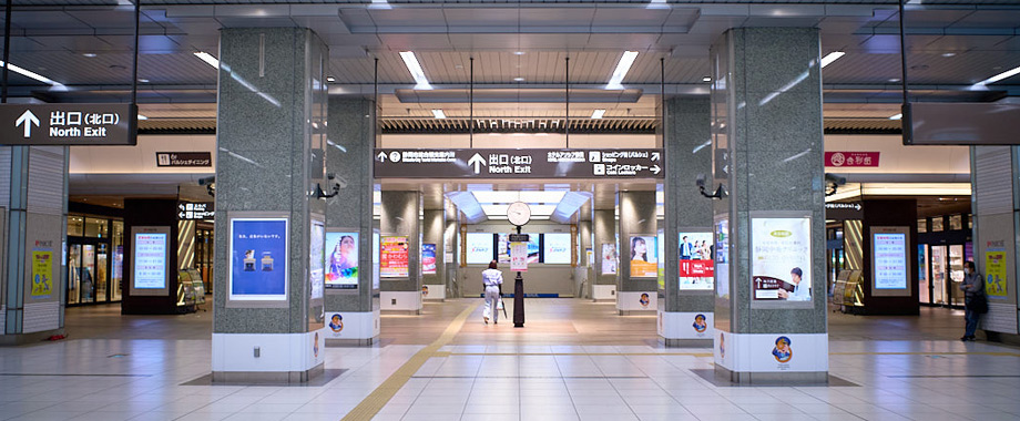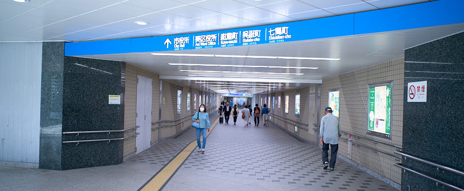 JR静岡駅改札を出て、右(北口方面)に向かい、バスターミナルには出ずに、地下への階段を降りてまっすぐ行くと、少し広いセンターコートに出ます。その中の左前(葵タワー、PARCOの方)の通路を通り、地上に上がらず地下をまっすぐ進んでいきます。PARCO左に通りすぎ、数十メートル歩いた左手にあります。